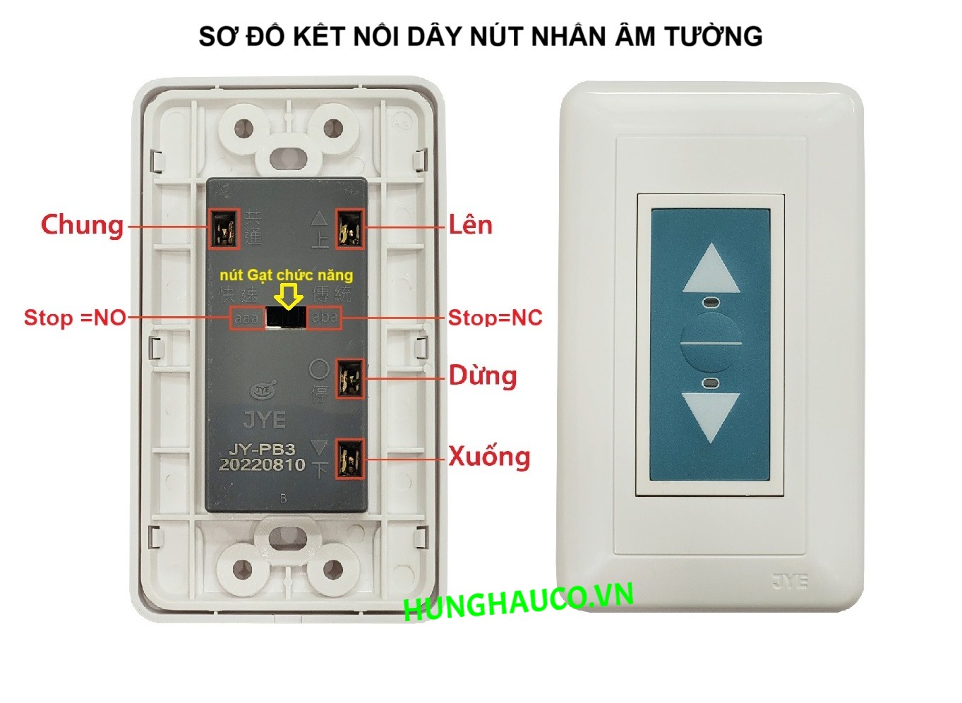 Thiết bị này có cấu tạo đơn giản gồm 3 nút (lên, xuống, dừng), hoạt động như một công tắc cơ học và mang lại tính thẩm mỹ cao do được lắp âm vào tường